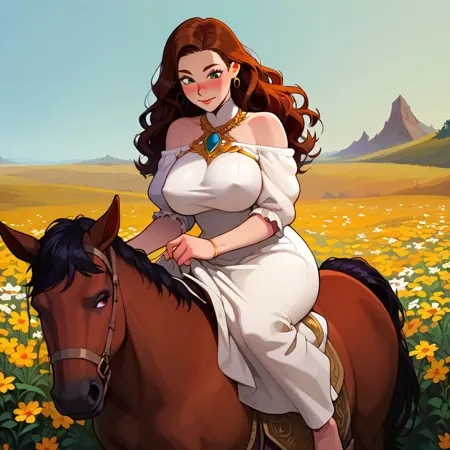使用“on horseback”来触发,和往常一样建议使用括号,并且你需要单独添加“horse”,否则马的形态会显得怪异。如果想要马鞍,使用“saddle”;如果想更有趣,使用“dildo saddle”。