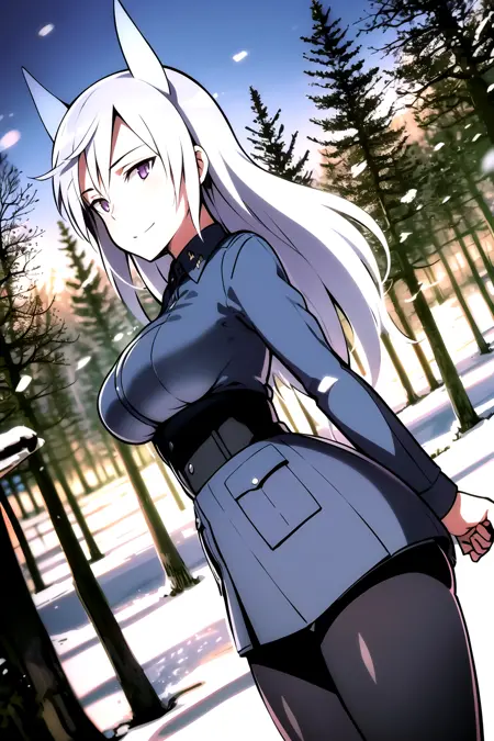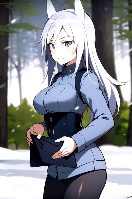 银发,紫眼,动物耳朵,尾巴,军装衬衫,黑色连裤袜