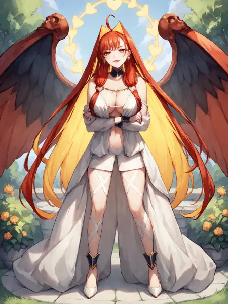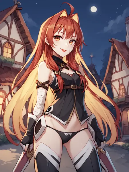 - 彼女が太ももに巻いている長い布の部分は、トレーニングデータには関連するプロンプトがありません。重みを十分に高くするとこれらの布が表示されますが、他の部分の画像が悪くなる可能性があります。重みを低くすると画像は良くなりますが、これらの布が表示されなくなるかもしれません。結果は個々の環境によって異なります。