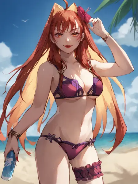 - 训练数据中没有任何提示词与她大腿上那两条长布条相关。如果你的权重设得太高,这些布条会出现,但图像其他部分可能不理想;如果权重设得太低,图像看起来不错,但那些布条可能根本不会出现。效果因人而异。