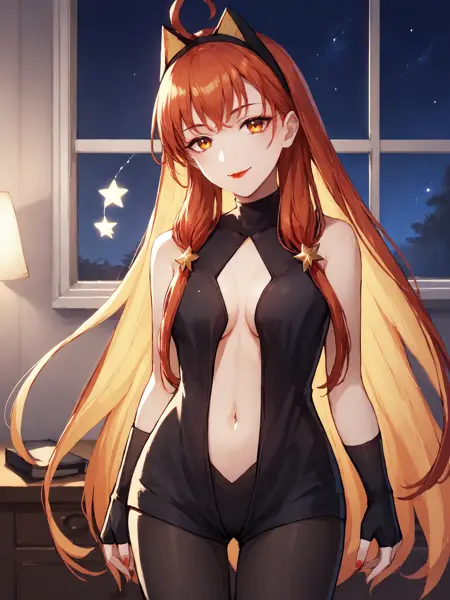 - 그녀 허벅지에 있는 긴 천 조각들은 학습 데이터에 해당 프롬프트가 없습니다. 가중치를 충분히 높이면 나타나지만, 나머지 이미지가 좋아보이지 않을 수 있습니다. 가중치를 낮추면 이미지는 잘 보이지만 그 천 조각들이 나타나지 않을 수 있습니다. 결과는 사용자마다 다를 수 있습니다.