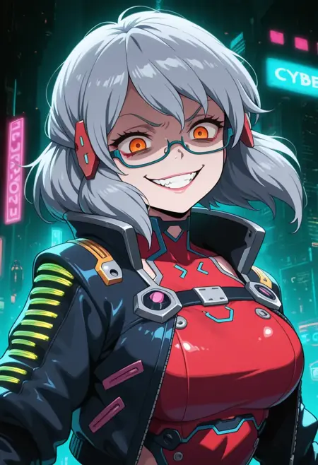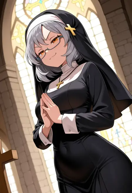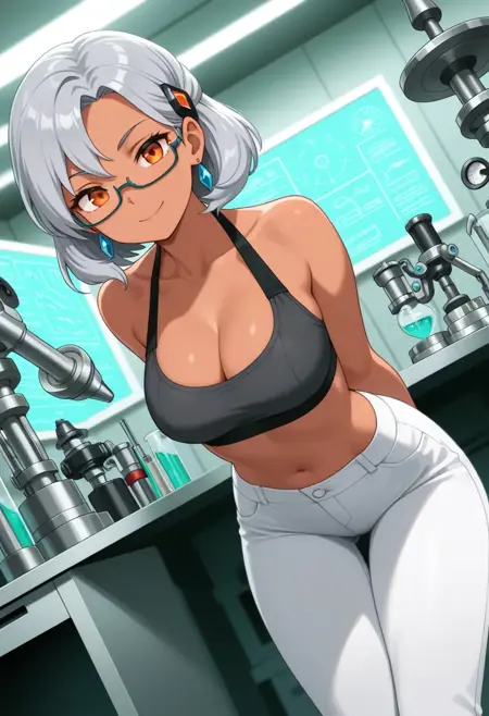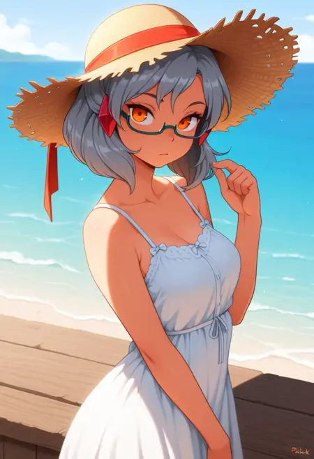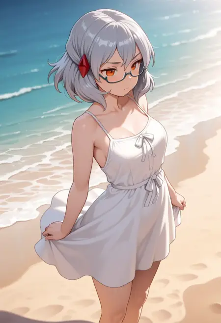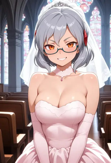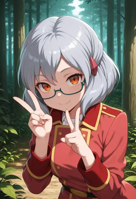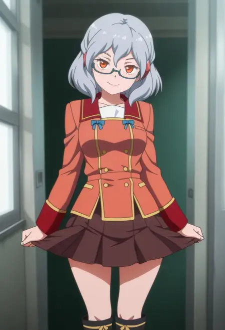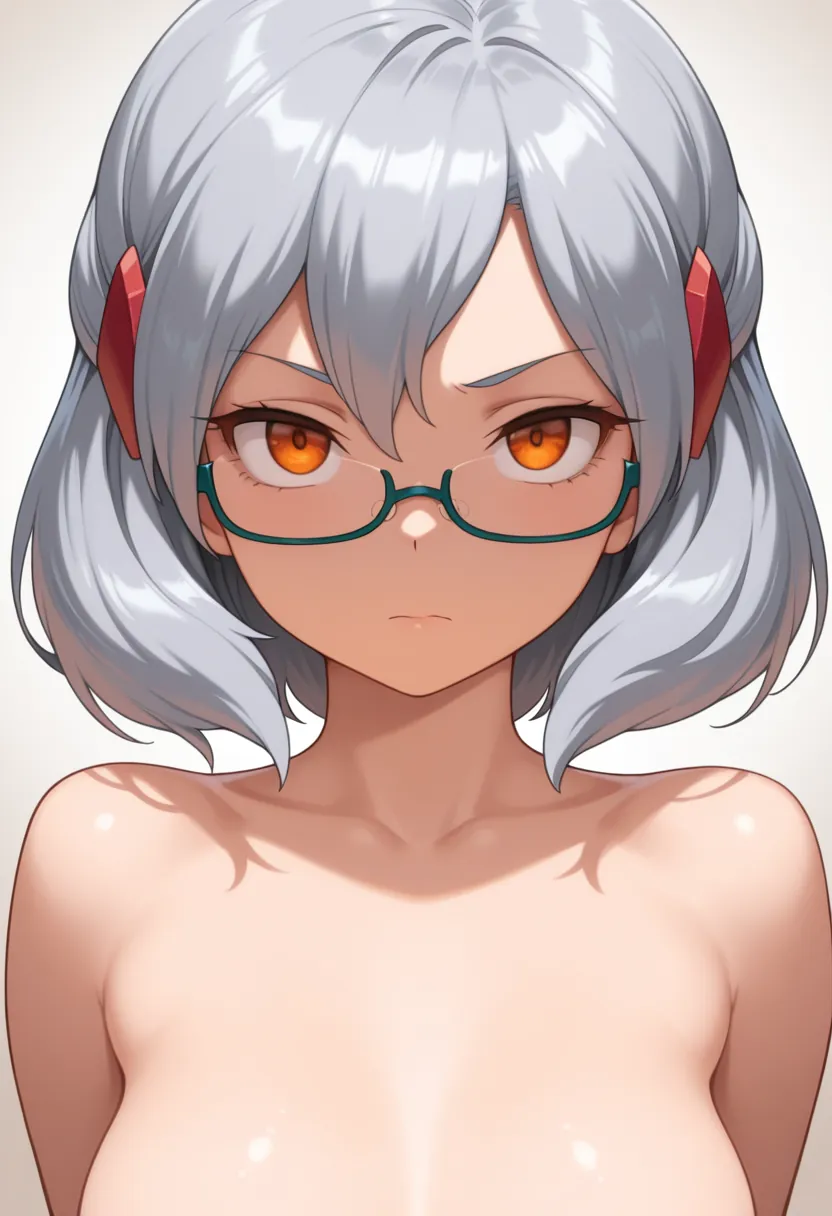 Miranda, めがね, オレンジ色の目, 髪飾り, セミリムレス眼鏡, 灰色の髪, 短い髪,