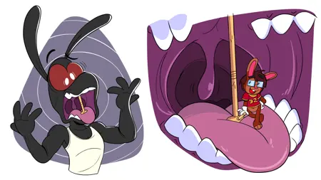opening mouth wide, mouth shot, mawshot, uvula, tongue, close up of throat, multiple views, inside throat view, close up of mouth, close up of throat