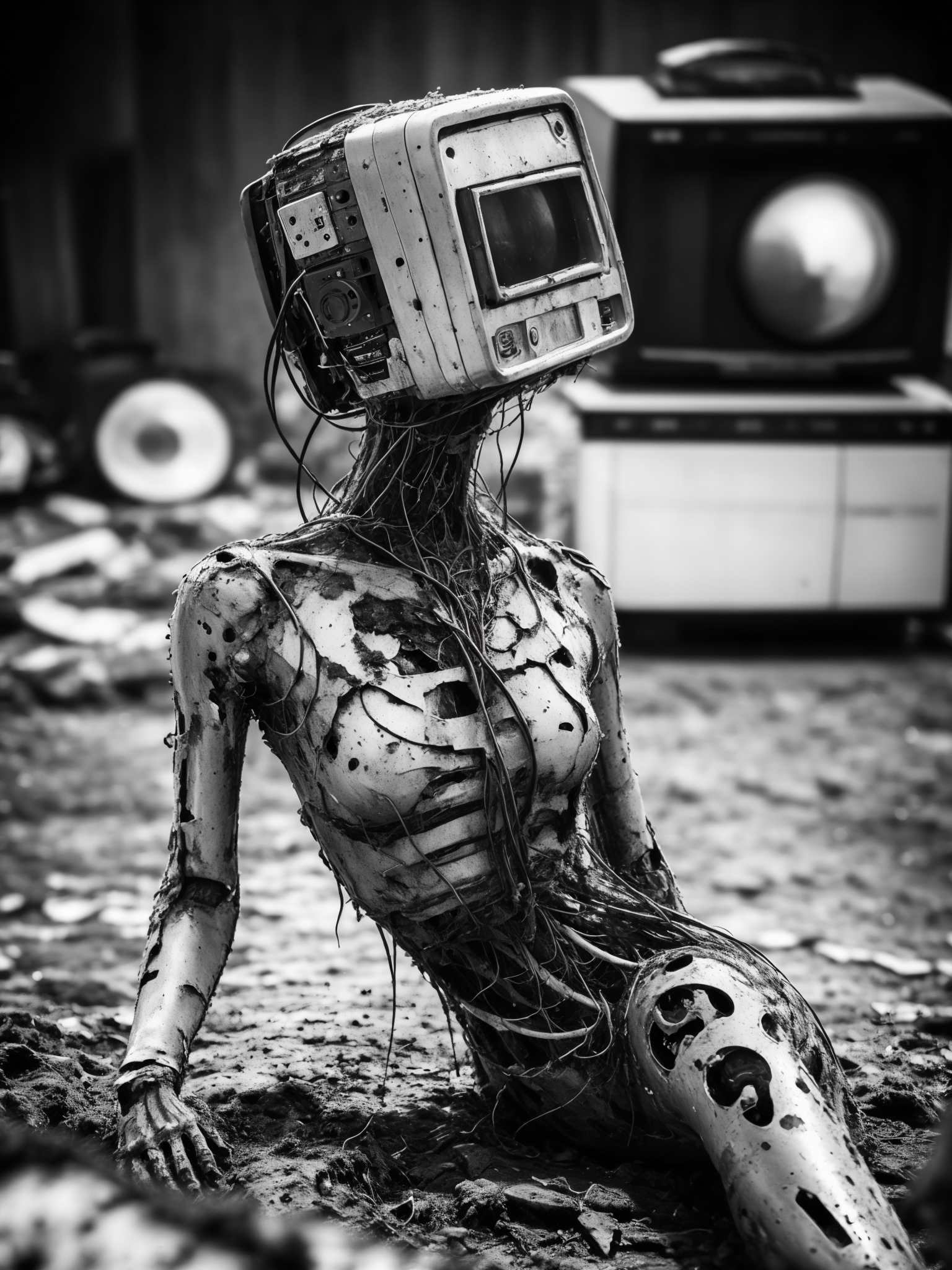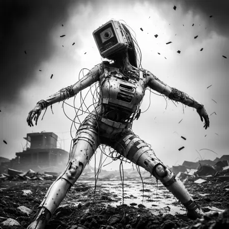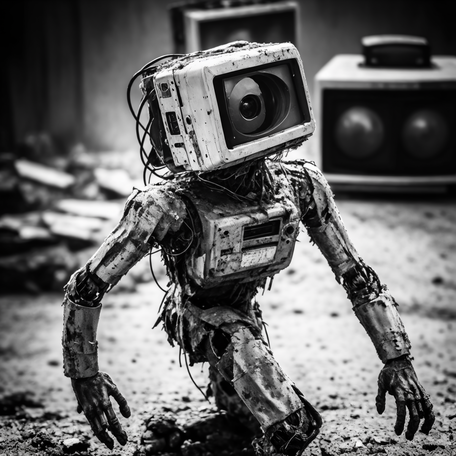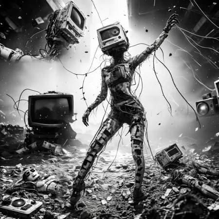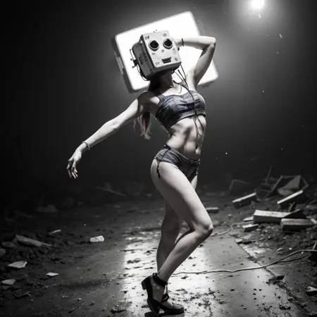 'tv head' 是电视头的触发词,其他触发词如 'debris'、'cable/wire'