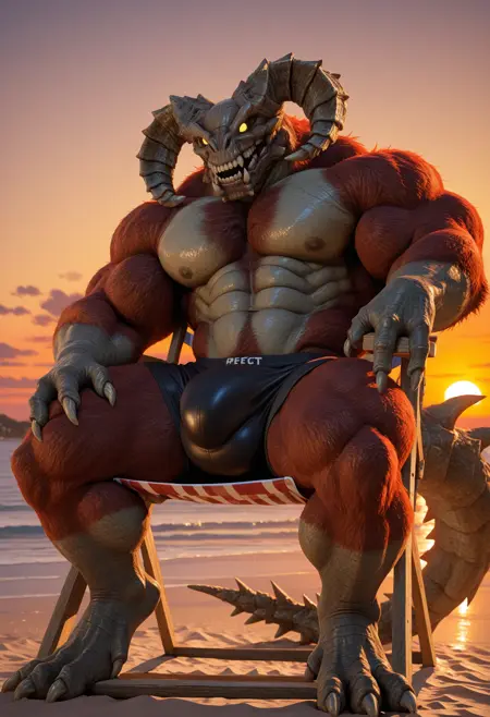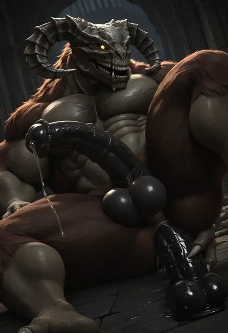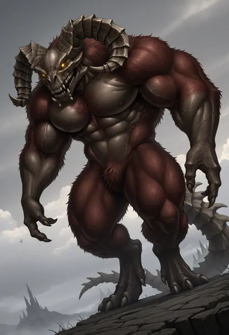 触发词(PDXL): TaurusDemon, monster, horns, yellow eyes, glowing eyes, demon, brown fur