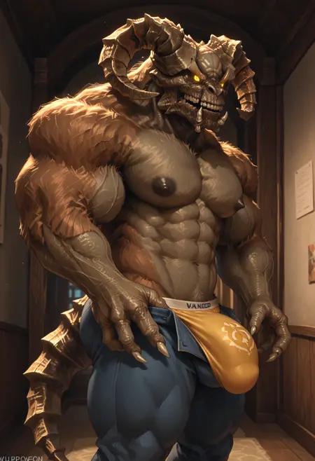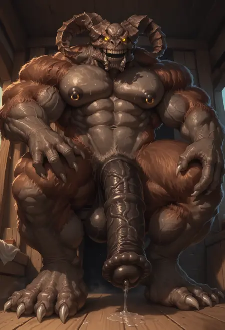 Trigger words (PDXL) : TaurusDemon, monster, horns, yellow eyes, glowing eyes, demon, brown fur