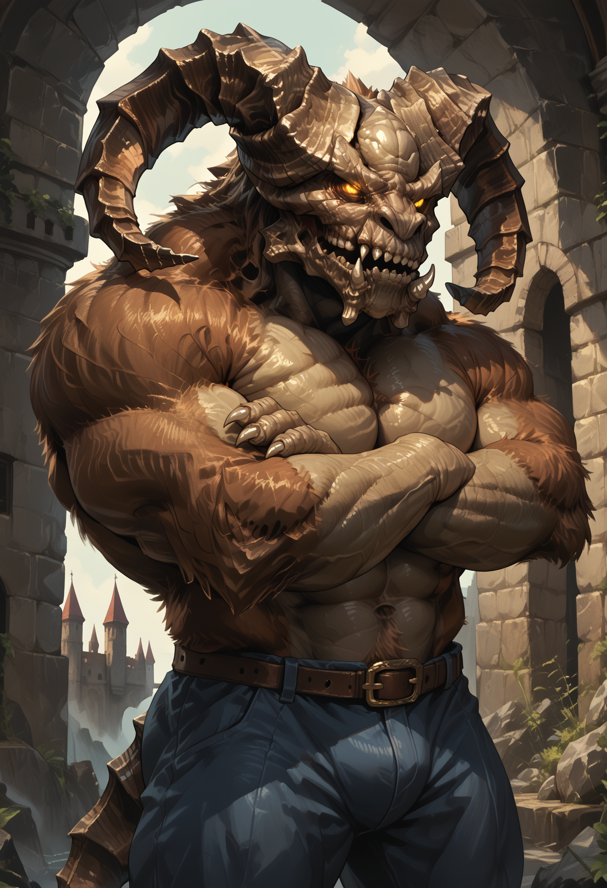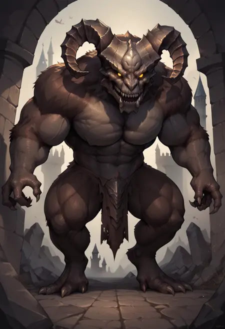 Trigger words (PDXL) : TaurusDemon, monster, horns, yellow eyes, glowing eyes, demon, brown fur