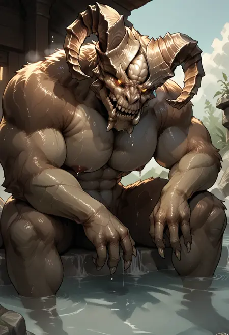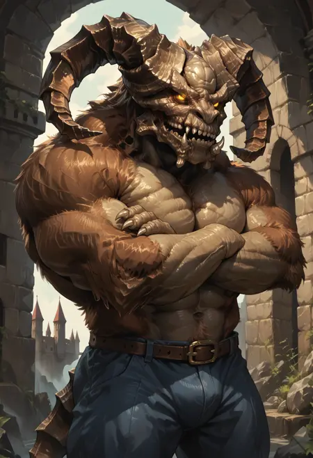 트리거 단어 (ILXL): t4urusd3m0n, monster, demon, horns, fur, claws, teeth, yellow eyes, no pupils, 3 fingers, bone tail