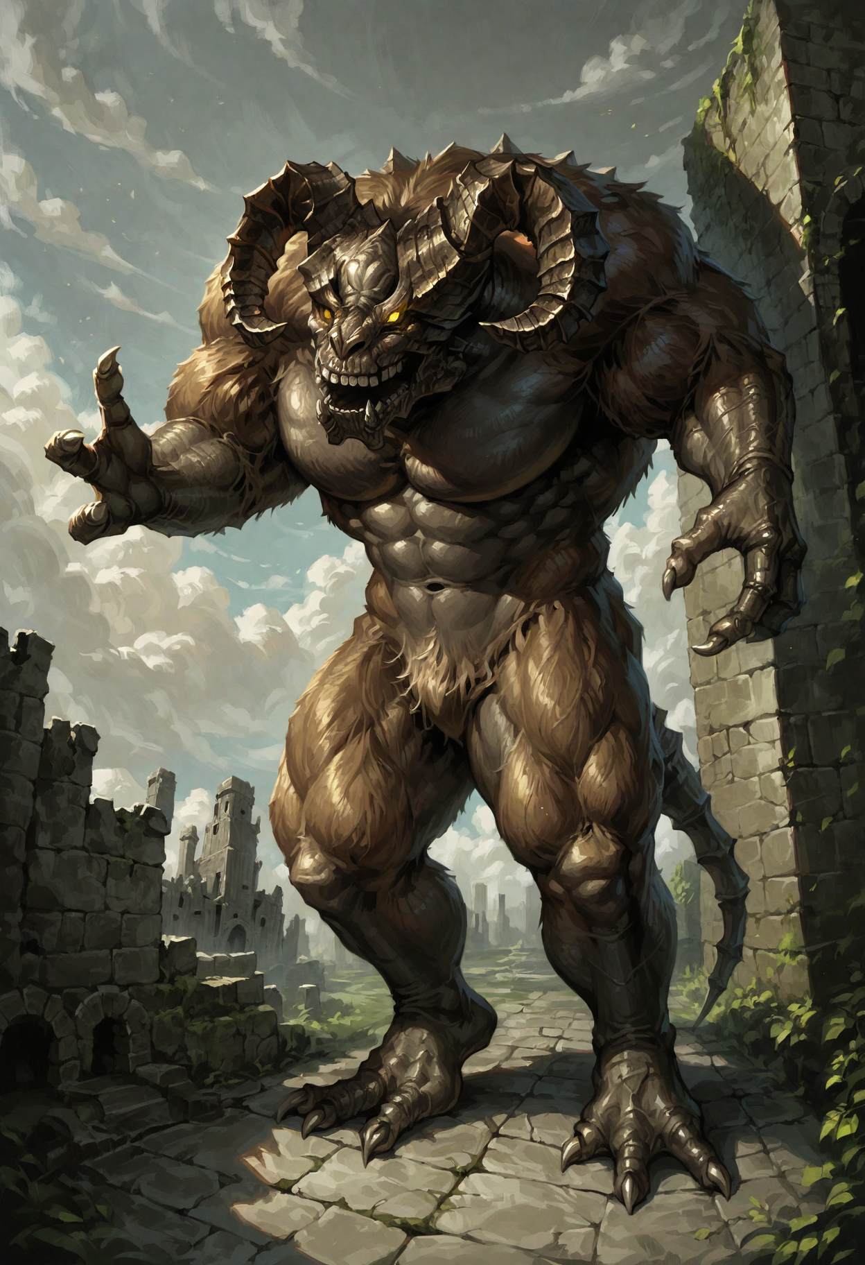 Trigger words (PDXL) : TaurusDemon, monster, horns, yellow eyes, glowing eyes, demon, brown fur