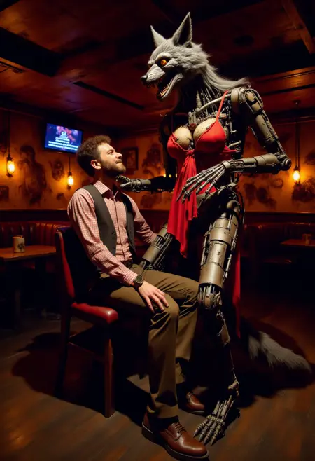 アニメトロニック(サブジェクト)ロボットを描いた、非常に精緻な写真。
