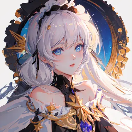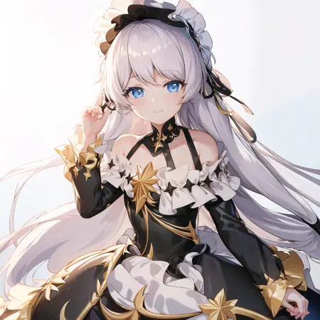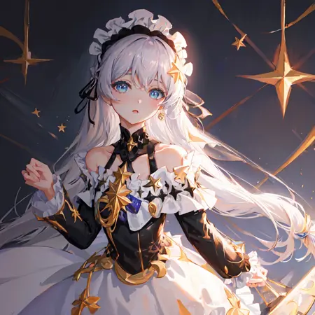 - (masterpiece:1.2), (best quality:1.3), empyrean_psalms, 1girl, black_dress, frilled_dress, off-shoulder_dress, bare_shoulders, long_sleeves, star_(symbol), lolita_fashion, lora:\_empyrean\_psalms\_v1-046:1