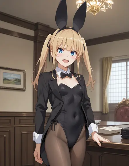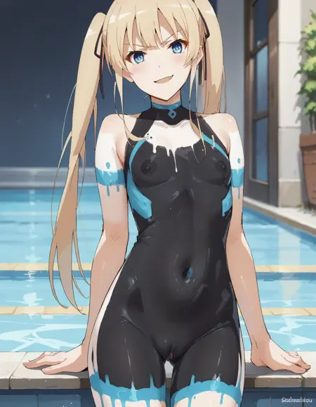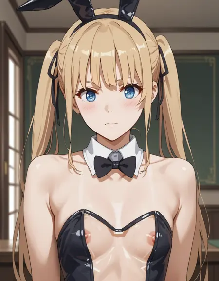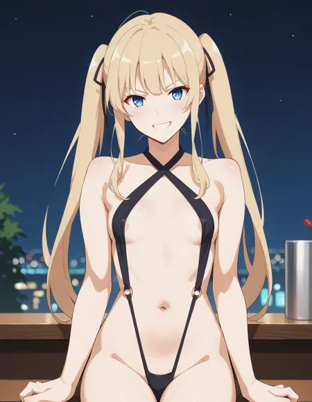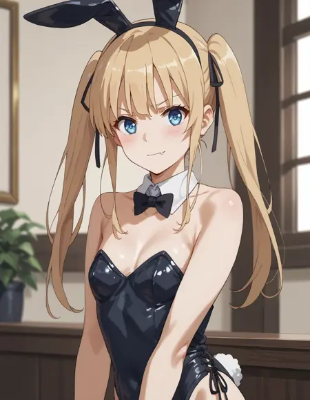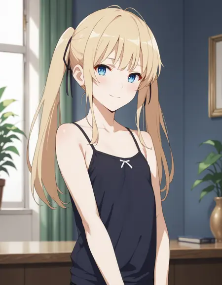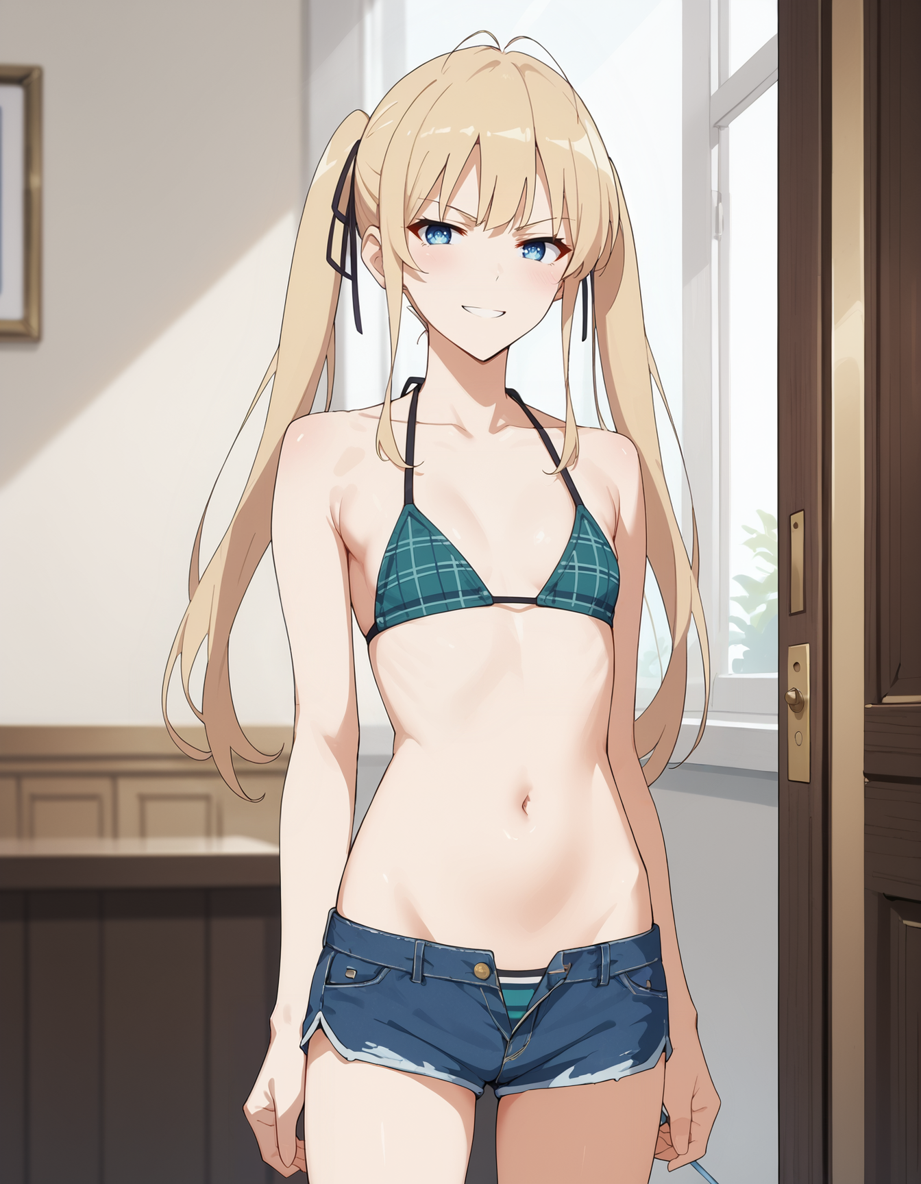 1소녀, 에리리 lora:Eriri:1, 금발, 파란 눈, 사와무라 스펜서 에리리, 긴 머리, 송곳니, 작은 가슴, 평평한 가슴
