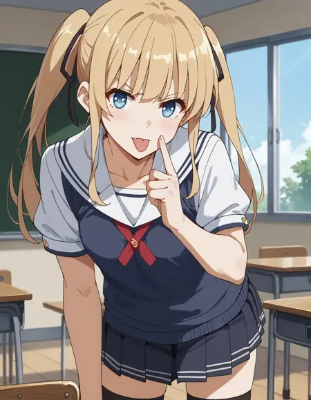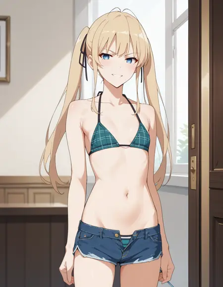 1girl,英梨梨 lora:Erir-ILi:1 ,金发,蓝眼,泽村斯潘塞英梨梨,长发,虎牙,小乳房,平坦胸部