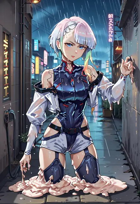 여름은 지나갔습니다. 하지만 뜨겁고 재미있으며 놀라운 기억들을 떠올려 봅시다! 오 씨발, 누군가 녹고 있어요!!! 당신도 이처럼 캐릭터를 녹일 수 있습니다! 이 LoRA를 캐릭터 프롬프트에 추가하고, 뜨거운 환경과 녹는 태그를 추가하세요.