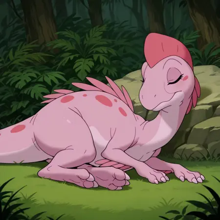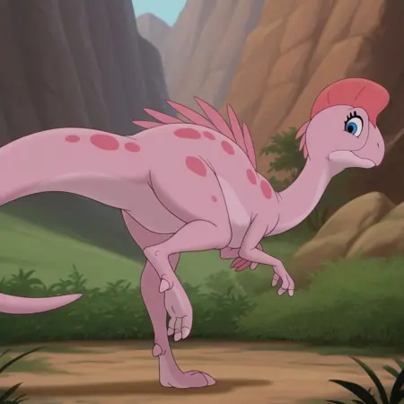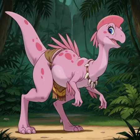 rubylbtIL, feral, female, Oviraptor, pink skin, crest, dinosaur