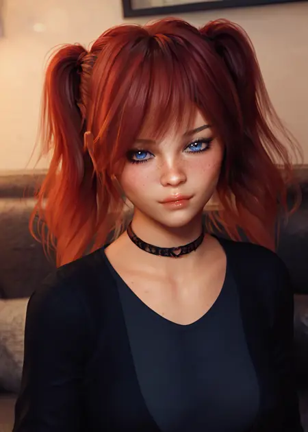 tamaradh mini, 파란 눈, 더블 테일, 빨간 머리, 두더지, 작은 가슴, 앞머리