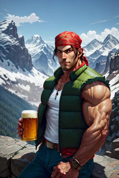 (赤いバンダナ)、(ネックレス)、(グリーン/ブラックのベスト)、(デニム/グリーンのパンツ)、(中程度の髪)、(ノースリーブのシャツ)、(赤いブレスレット)、(黒いベルト)、(白い靴下) および (ネックレス) などの要素を試して、服を編集、追加、削除できます。