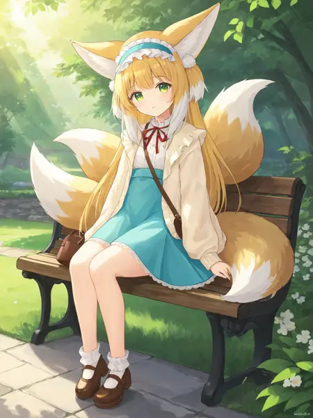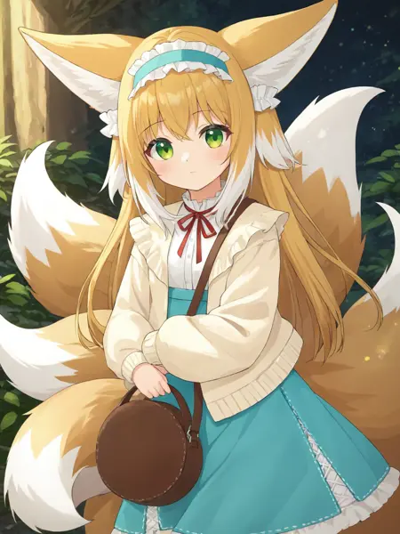 - 1girl, suzuran (arknights), solo, fox girl, ears down, fox tail, fox ears, animal ears