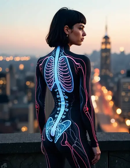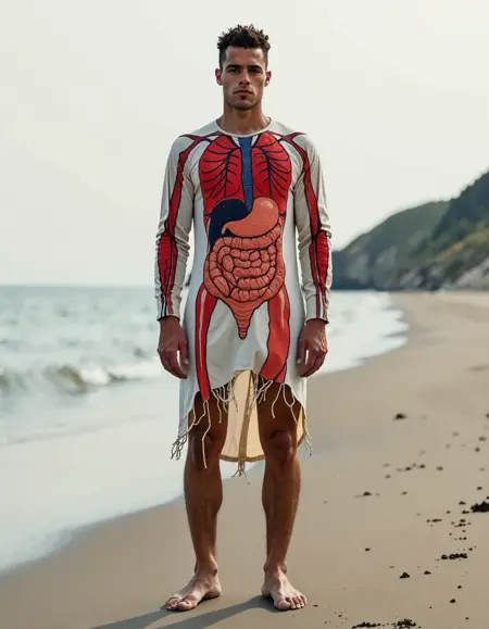 ファッション業界では、内臓衣装は大胆で先鋭的なファッションメッセージを生み出すために用いられます。人間の内部構造の模様や色を模倣することで、デザイナーは教育的かつ審美的価値のある衣装を制作できます。たとえば、ハンガリーの新メディアアーティストであるデヴィッド・シュオーダーは、AI技術を用いて解剖学的インスピレーションを受けた衣装シリーズを制作し、インターネット上で広く注目を集めました。