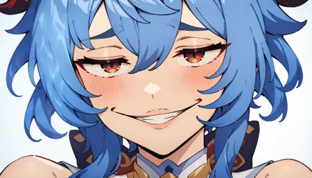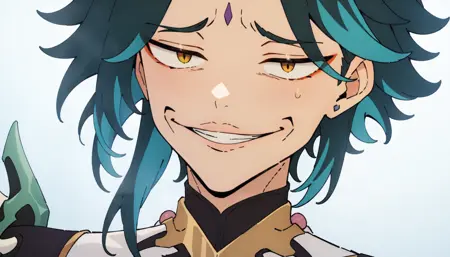 very aesthetic, newest, best quality, masterpiece, absurdres, gloating face, 1boy, zhongli \(genshin impact\), portrait, white background