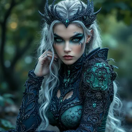 액세서리: 뿔, 고트식 보석, 지팡이나 화려한 왕관과 같은 자연에서 영감을 받은 요소.