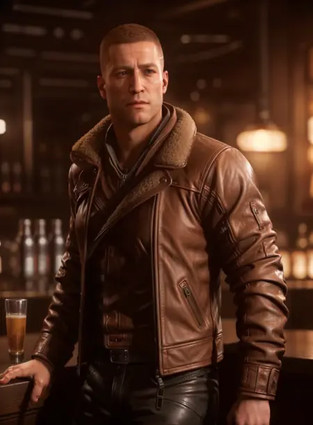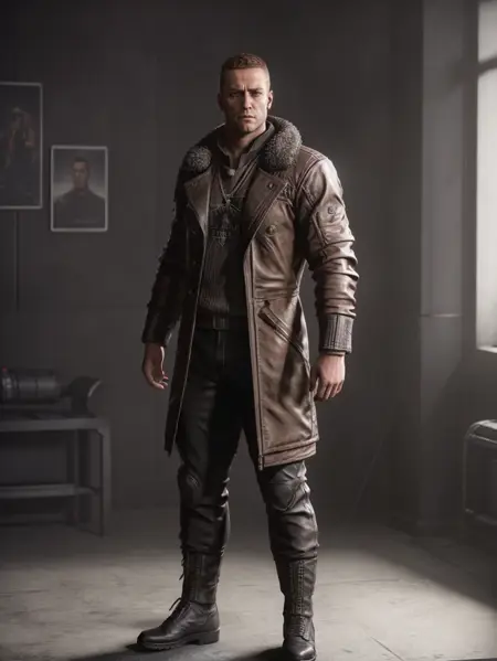 예시 프롬프트: wolfensteinblazko가 가죽 코트를 입고 방에 서 있음 / wolfensteinblazko가 약간의 수염을 기르고 가죽 코트를 입고 멀리 어떤 것을 바라보고 있음.