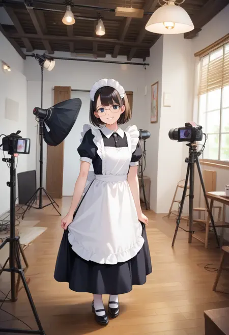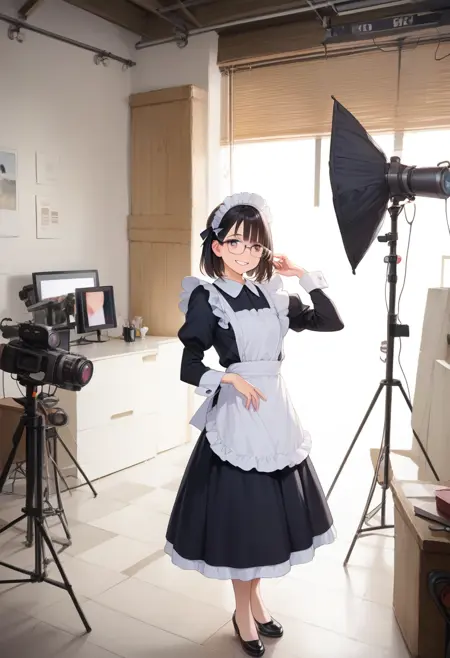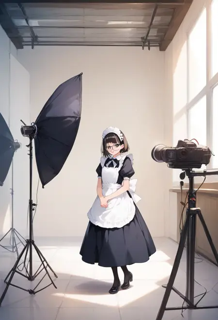 これは照明機材や白ホリのある写真撮影スタジオっぽい感じの風景が描けるかもしれないLoRAです。