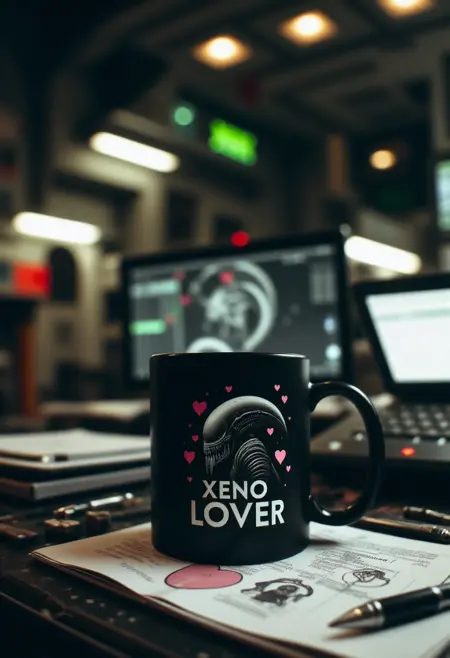 - 一张照片,展示一个(颜色)陶瓷咖啡杯醒目地放置在(地点)。杯子上印有(主题)的图像,并配有文字说明“(文本)”