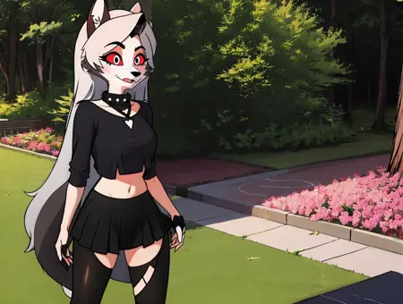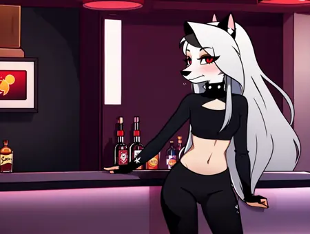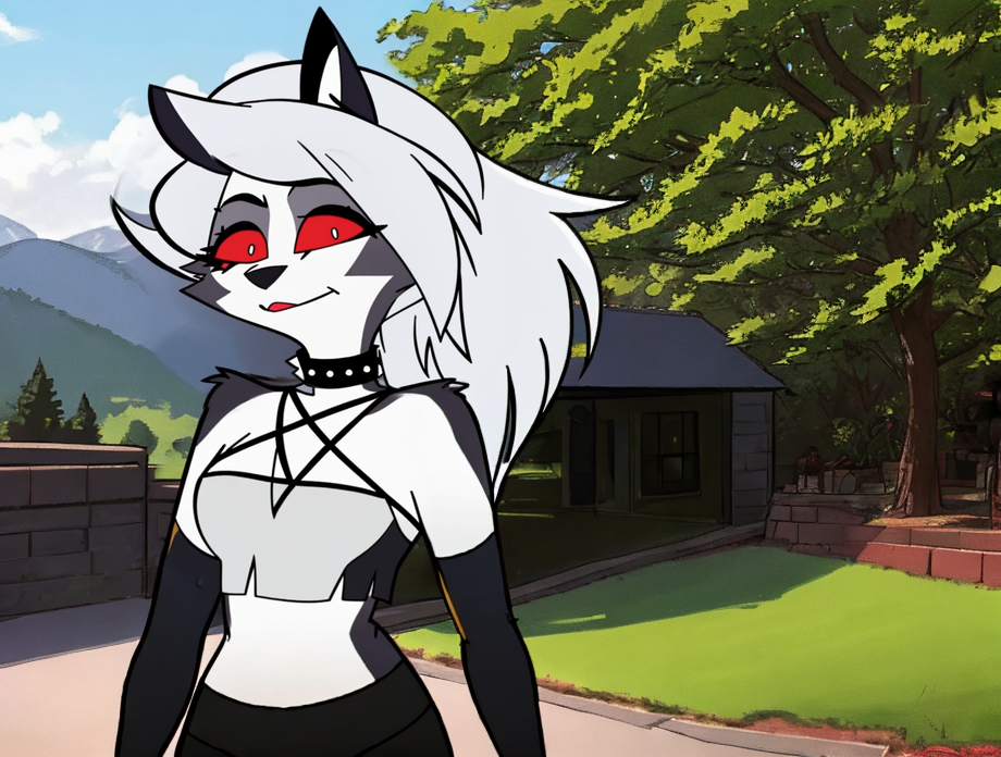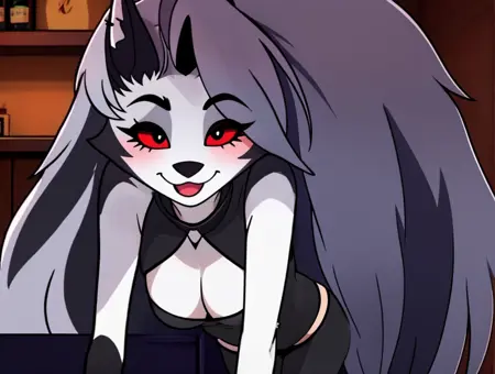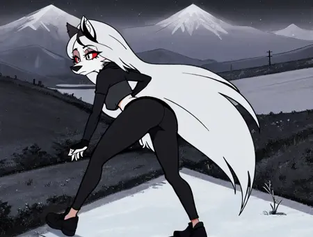 建议使用以下标记:loona、毛茸茸的、性感毛茸茸的、紧身黑色紧身裤、卡通、插图。