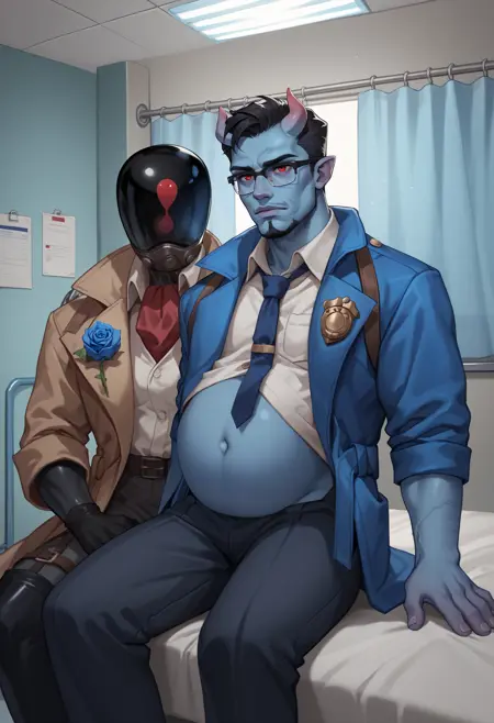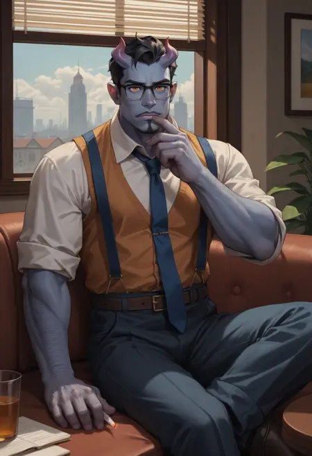 强化标签:眼镜、蓝色皮肤、黑发、角、胡须、肌肉发达