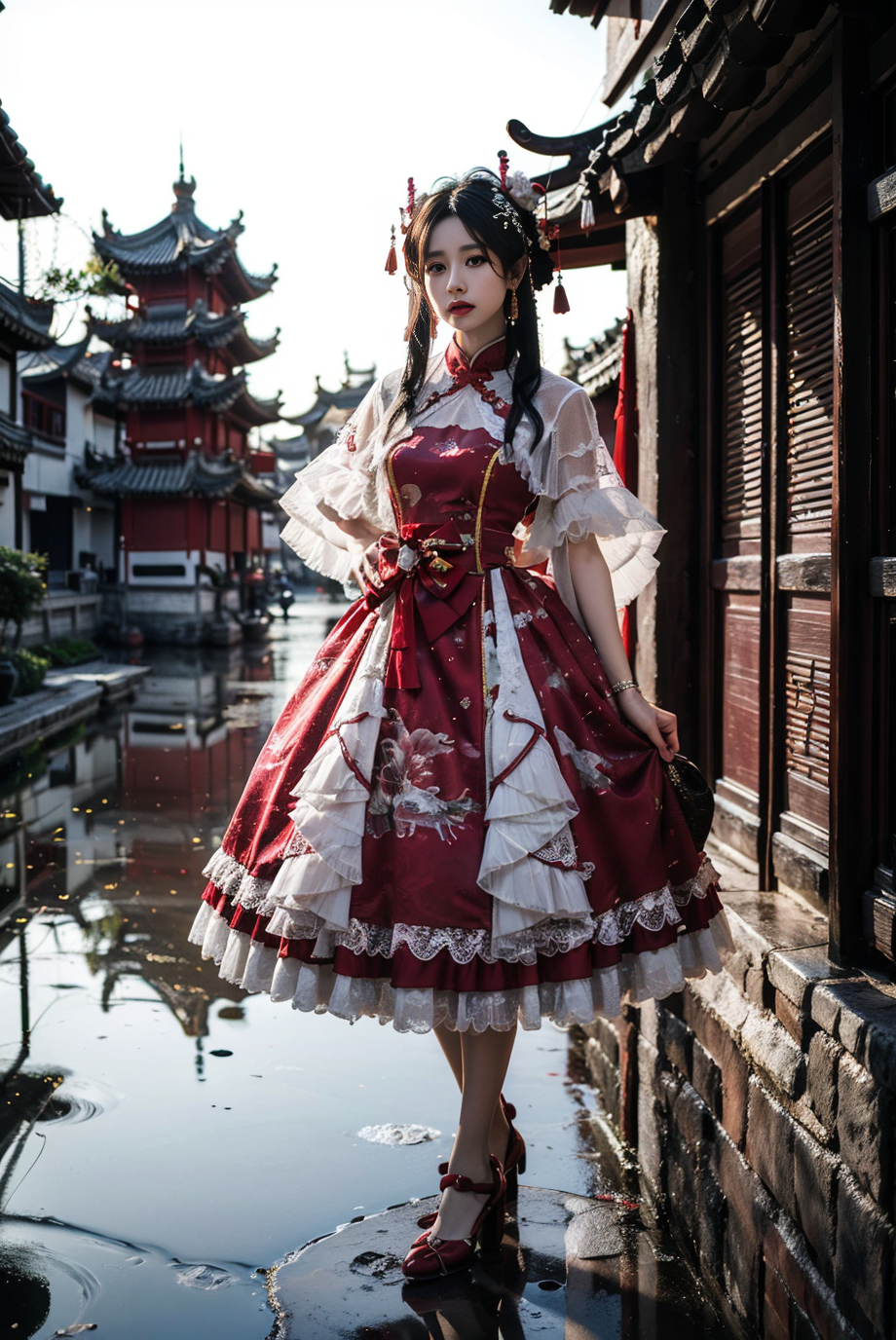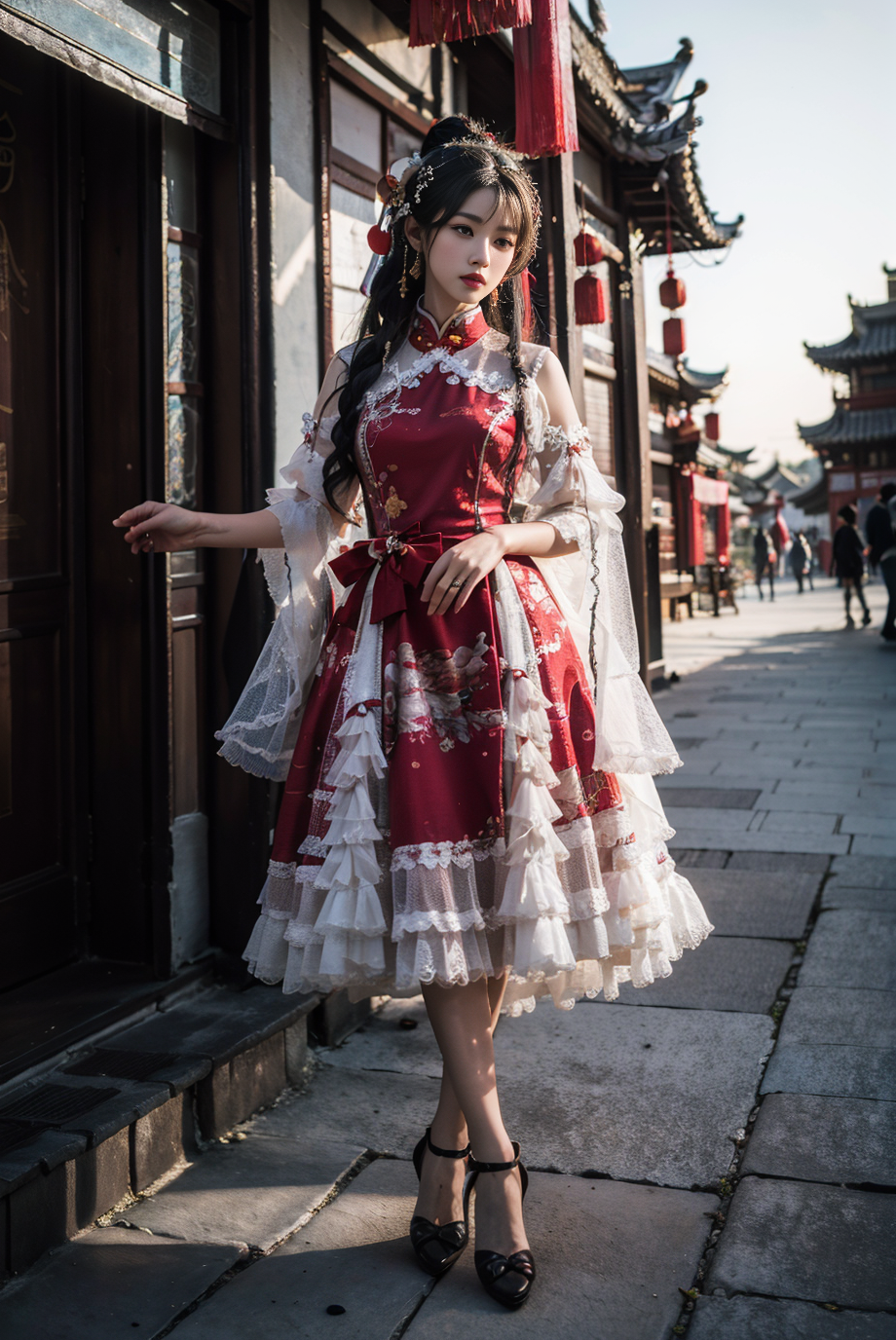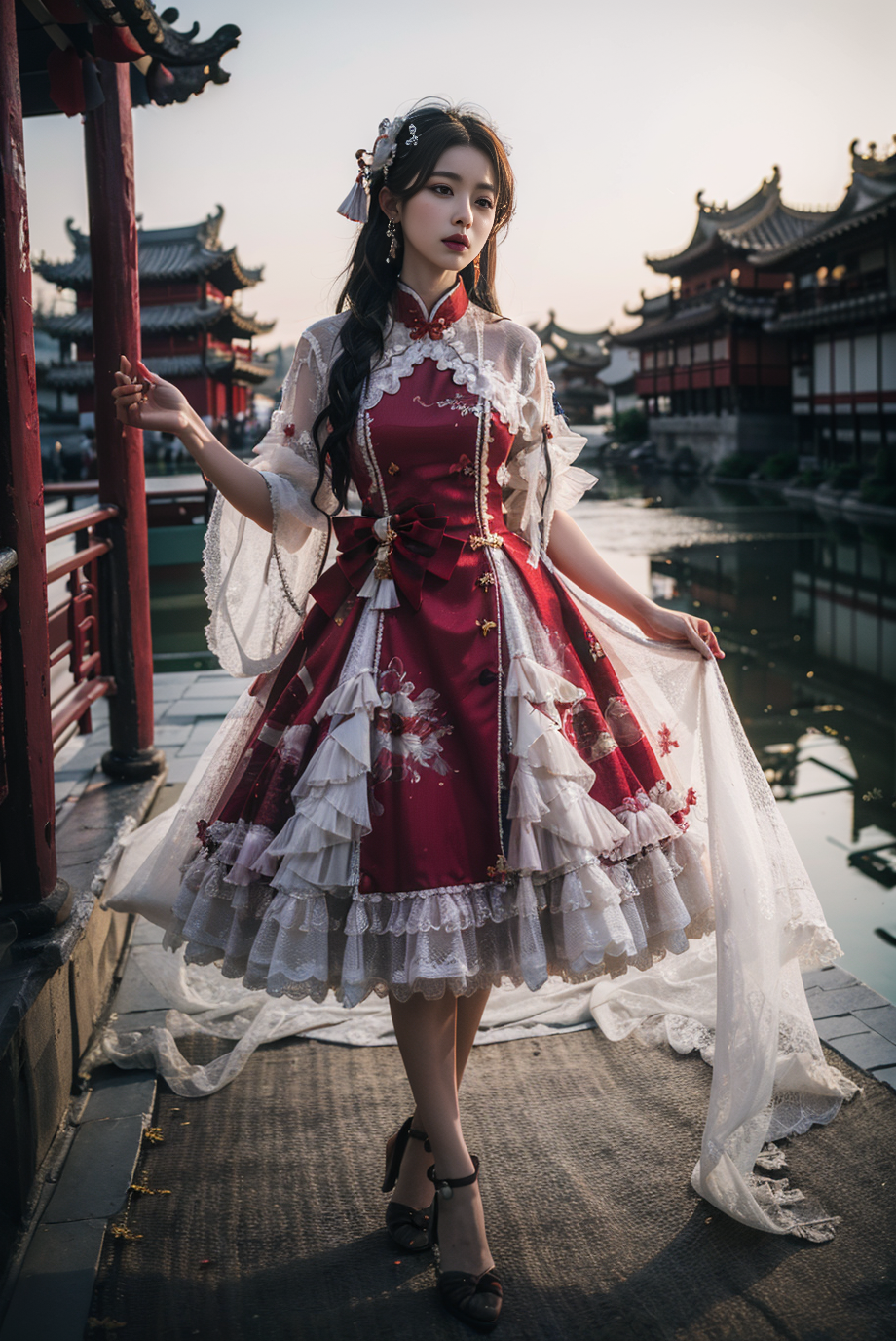 Some modern clothing with traditional Chinese elements. Such as Lolita dress with chinses traditional element.