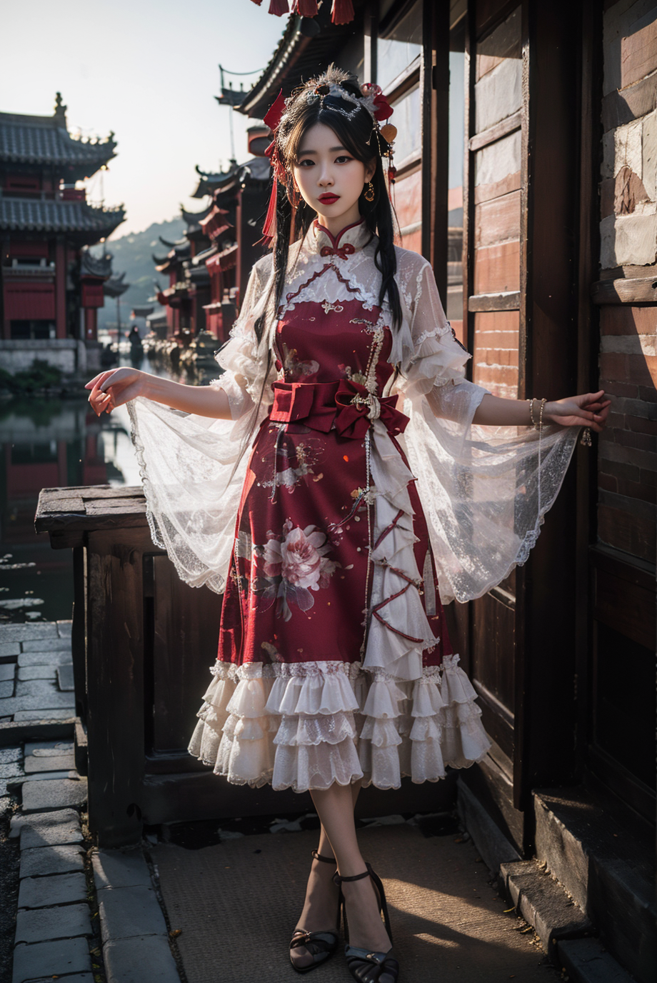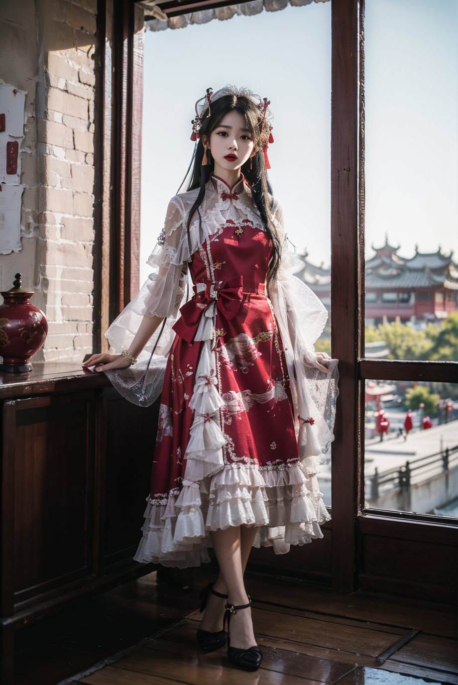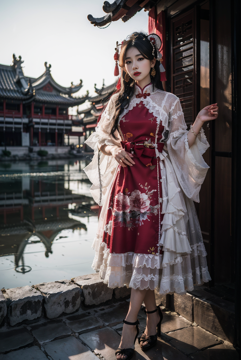 Some modern clothing with traditional Chinese elements. Such as Lolita dress with chinses traditional element.