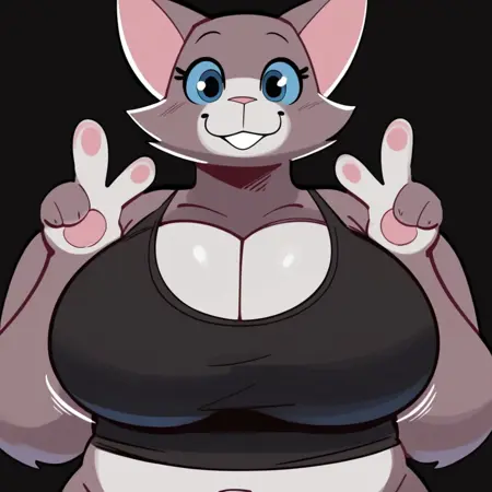 正面提示:TabathaSA,兽人,人形,猫科动物,灰色身体,灰色毛发,白色身体,白色毛发,双色身体,双色毛发,腮红线条,蓝色眼白,蓝色眼睛,微胖女性,大乳房,粉红色鼻子,粉红色乳头,睫毛,胸部毛簇,尾巴