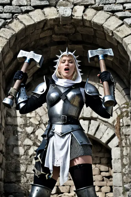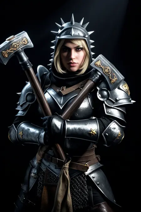 有时,当伯莎在晨光中穿戴她的格罗姆里尔铠甲时,她会追忆自己逝去的纯真年华。随后,她愤怒地将镶钉皮带紧紧勒在如铁般坚硬的四肢上,大步走出,花费数小时练习她的巨战锤,正如西格玛的新娘应有的那样,为决战之日做好准备。