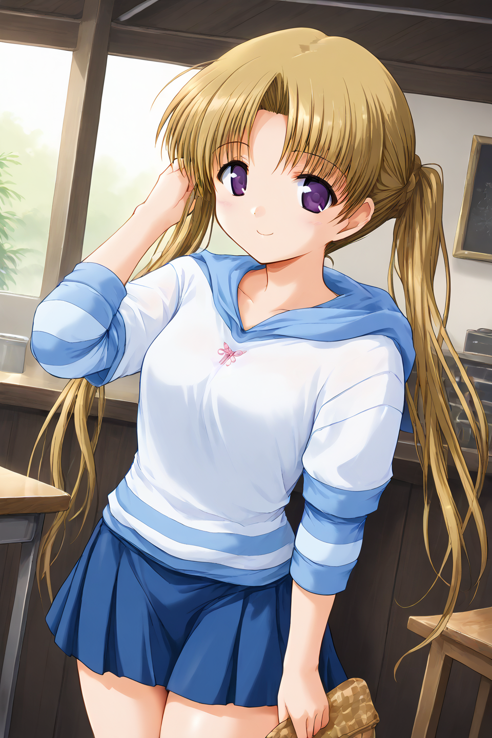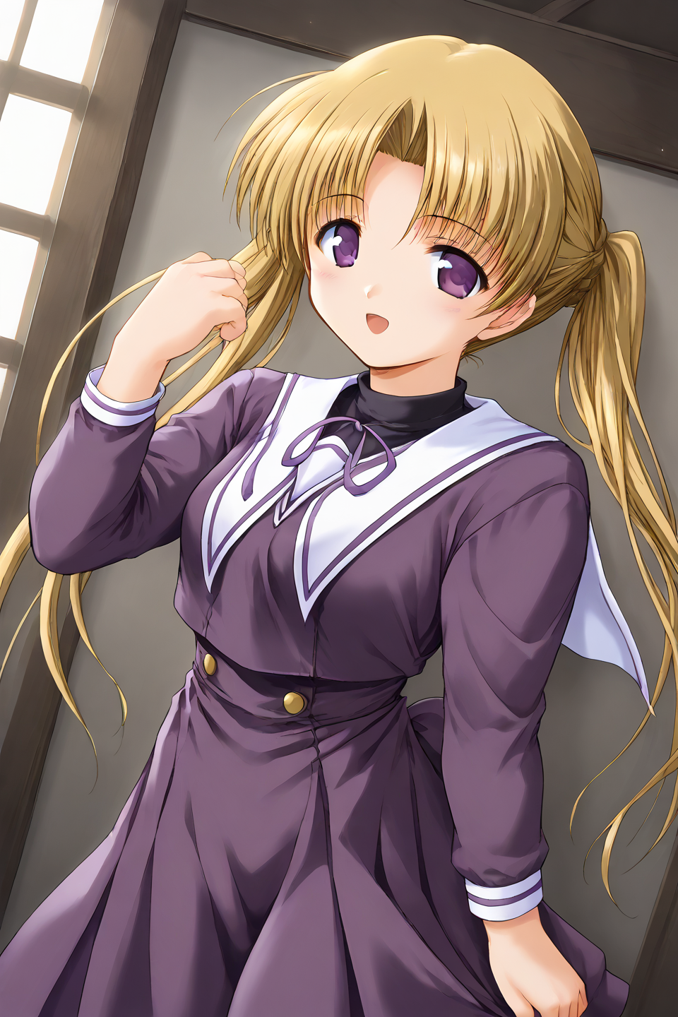 안정감 있는 금발 트윈테일 캐릭터, 사치니다. 이 작품에서 가장 많은 복장을 소유하고 특별 대우받는 것은, 오가스트 작품의 캐릭터로서 비극적인 운명을 겪는 소녀이기 때문일까요?