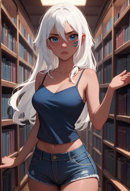 (Positive Prompts) kida, white hair, long hair, blue eyes, dark-skinned female,