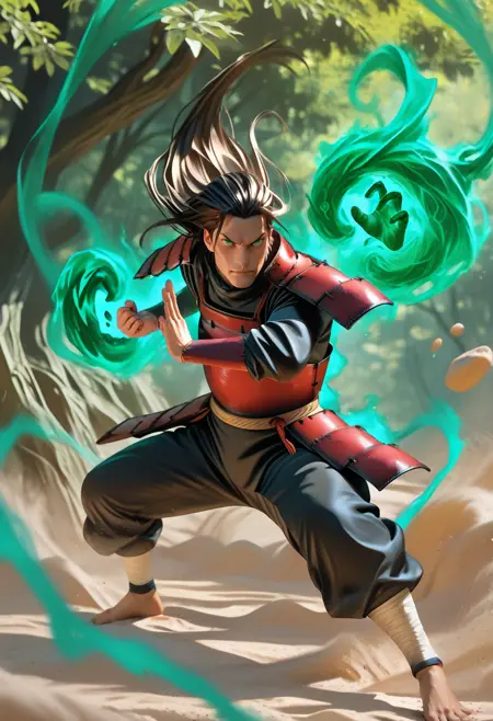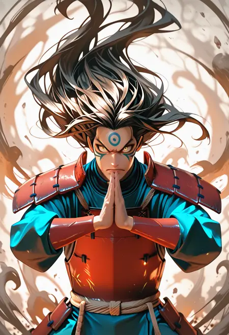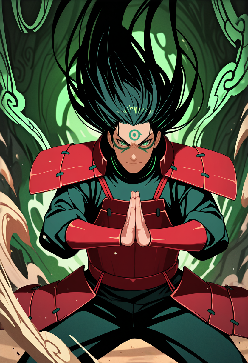 仙人モードを使用するには、プロンプトに "hashirama_sage, forehead mark, facial mark, eye mark" を追加してください