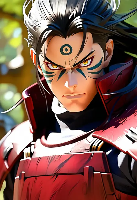 仙人モードを使用するには、プロンプトに "hashirama_sage, forehead mark, facial mark, eye mark" を追加してください