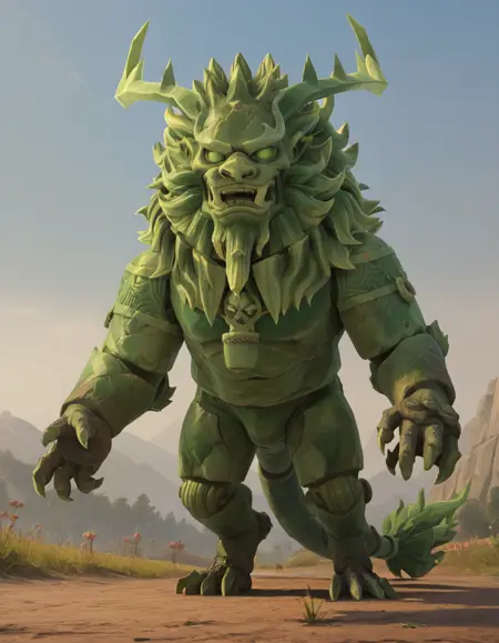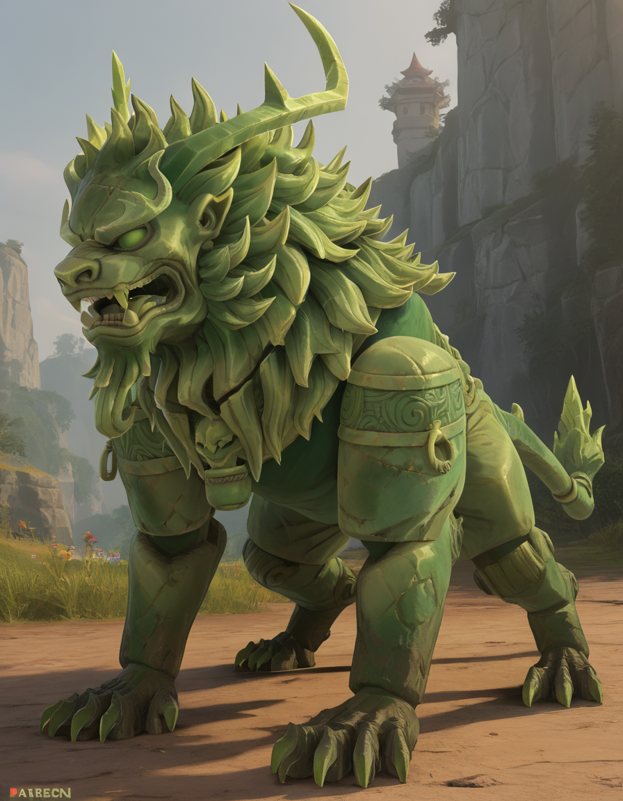 JadeLion, monster, horns, claws, tail,