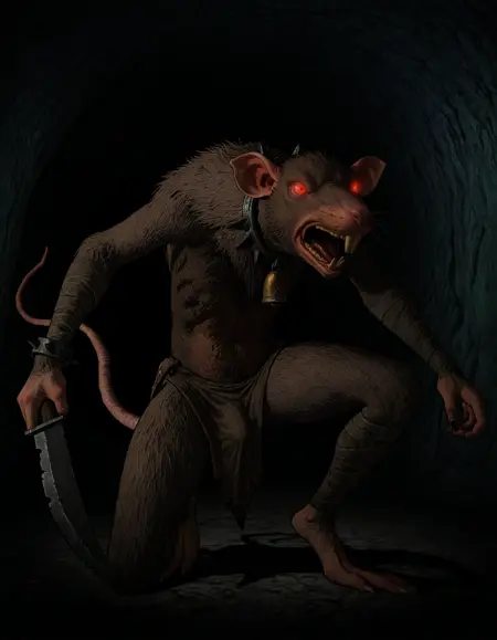 Skavenslave, monster, tail, loincloth, cowl, holding sword,