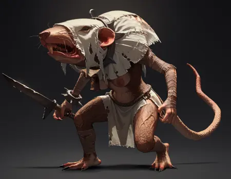 Skavenslave, monster, tail, loincloth, cowl, holding sword,