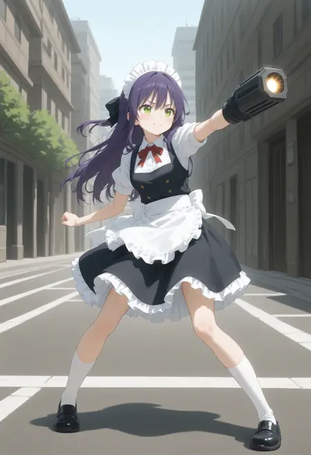 虽然模型已进行过基础训练,但受东方Project的灵乌路空影响较大,导致仅生成六角形棒状物,本LoRA旨在修正此问题。为避免静态姿势过于单调,建议同时结合使用dynamic pose、action pose、outstretched arm、weapon、gun等关键词。