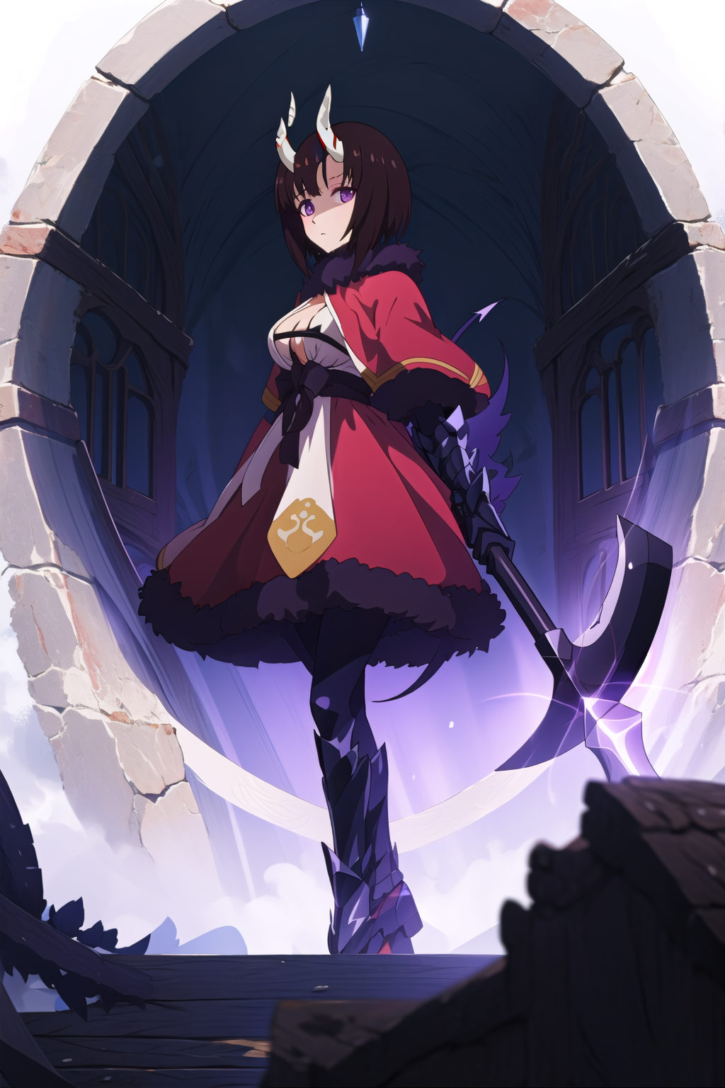 기본 프롬프트: 1girl, eriko, 보라색 눈, 갈색 머리, 곧은 앞머리, 보브 컷, 뿔,