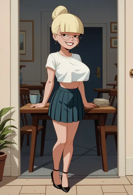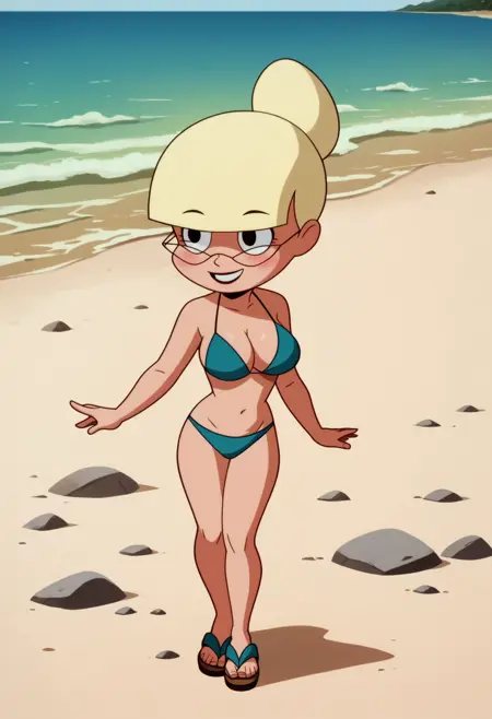 マリー・ルイーズ・ダール(ベビーダル)は、『バットマン:ザ・アニメイテッド・シリーズ』(BTAS)における2回目の登場時の姿。永遠に若い体に閉じ込められた、完全に成熟した女性。このモデルは、彼女の若い頃の服を着た姿ではなく、成熟した姿の画像のみで学習されています。モデルはツインテールを付けてもらうことを喜んでサポートします。