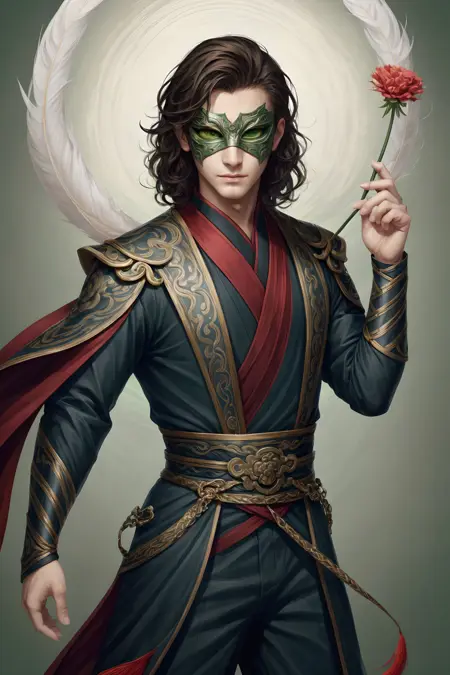 和其他LORA一样,权重调节到0.7-1之间,是头像和面具。