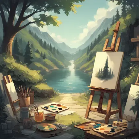可选:画布(对象)、调色板(对象)、画作(对象)、画架、室内、窗户