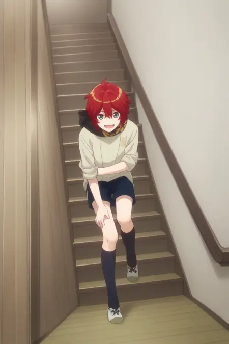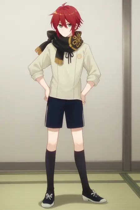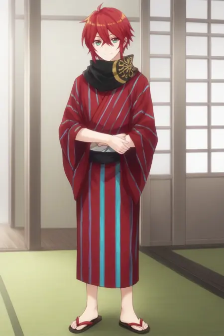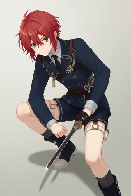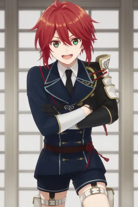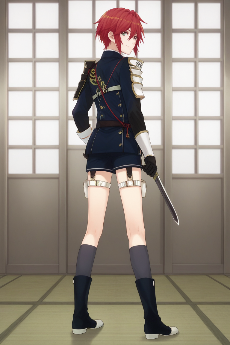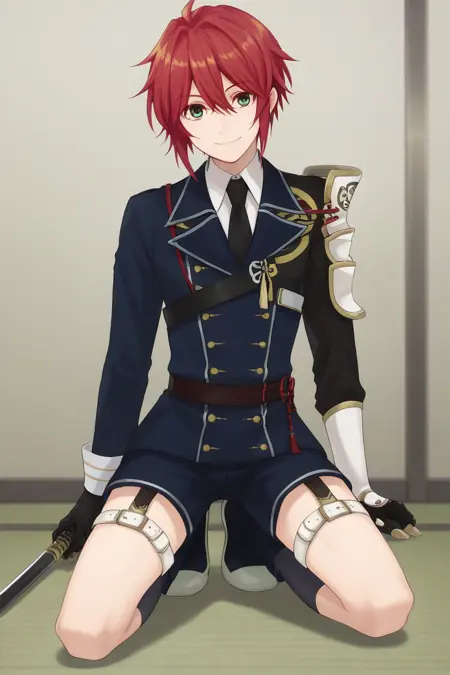 shinano toushirou, red hair, green eyes, hanamaru style,
