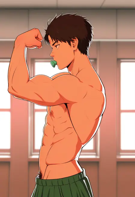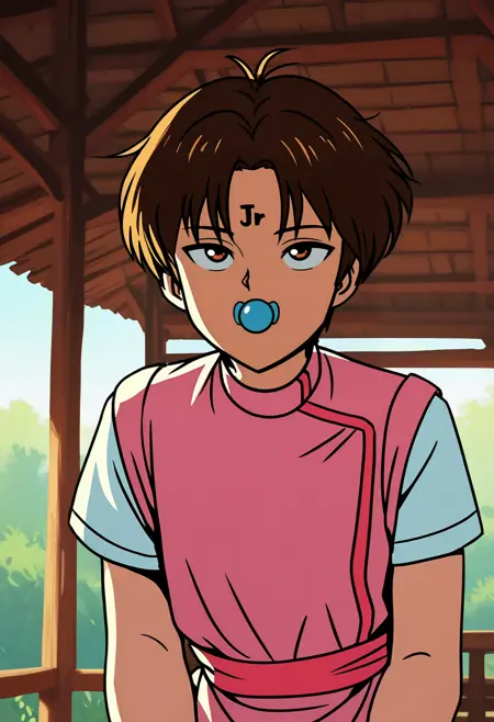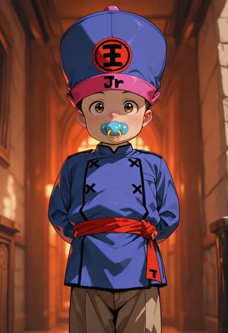 yknma_yyh, male child, pacifier, headwear, brown pants