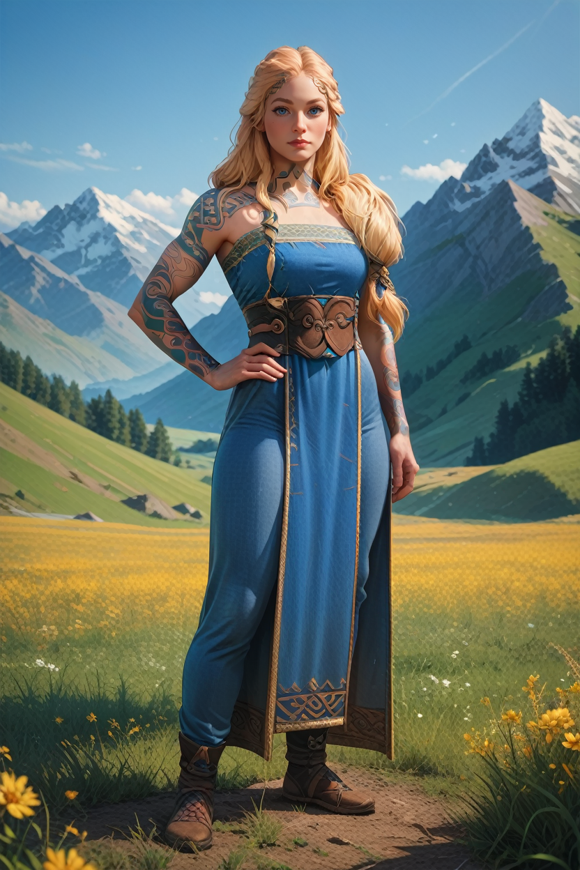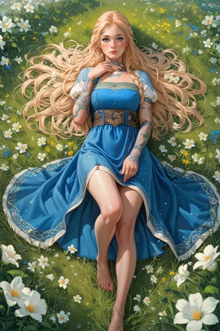 GOWSif, 1girl, blonde hair, blue eyes, long hair, tattoo