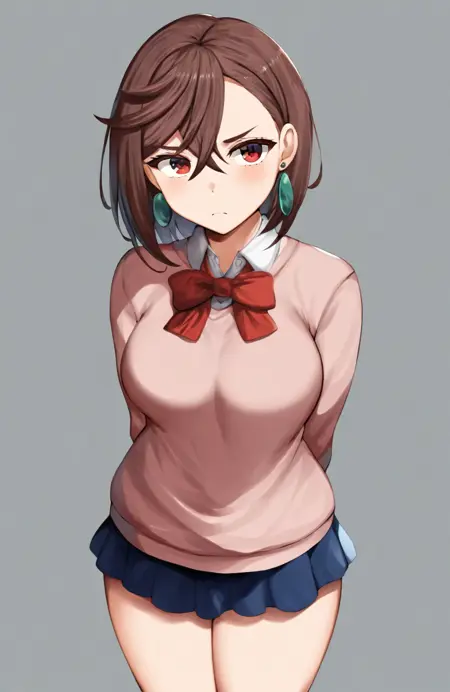 外观标签:棕色头发,棕色眼睛,齐刘海,头发遮住眼睛,长刘海,耳后头发